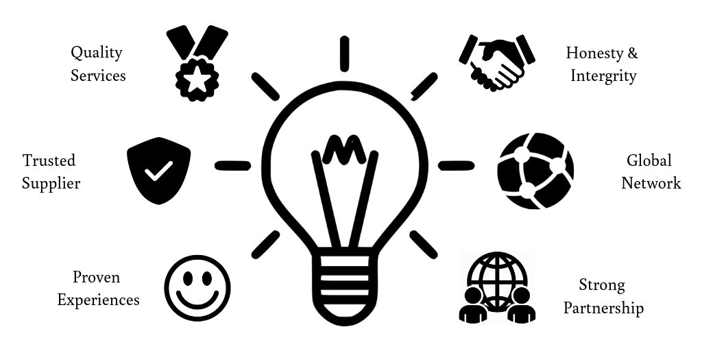 To give superior products and services to our customers and suppliers with a sense of integrity. Relationship and trust are the pillars of our development.